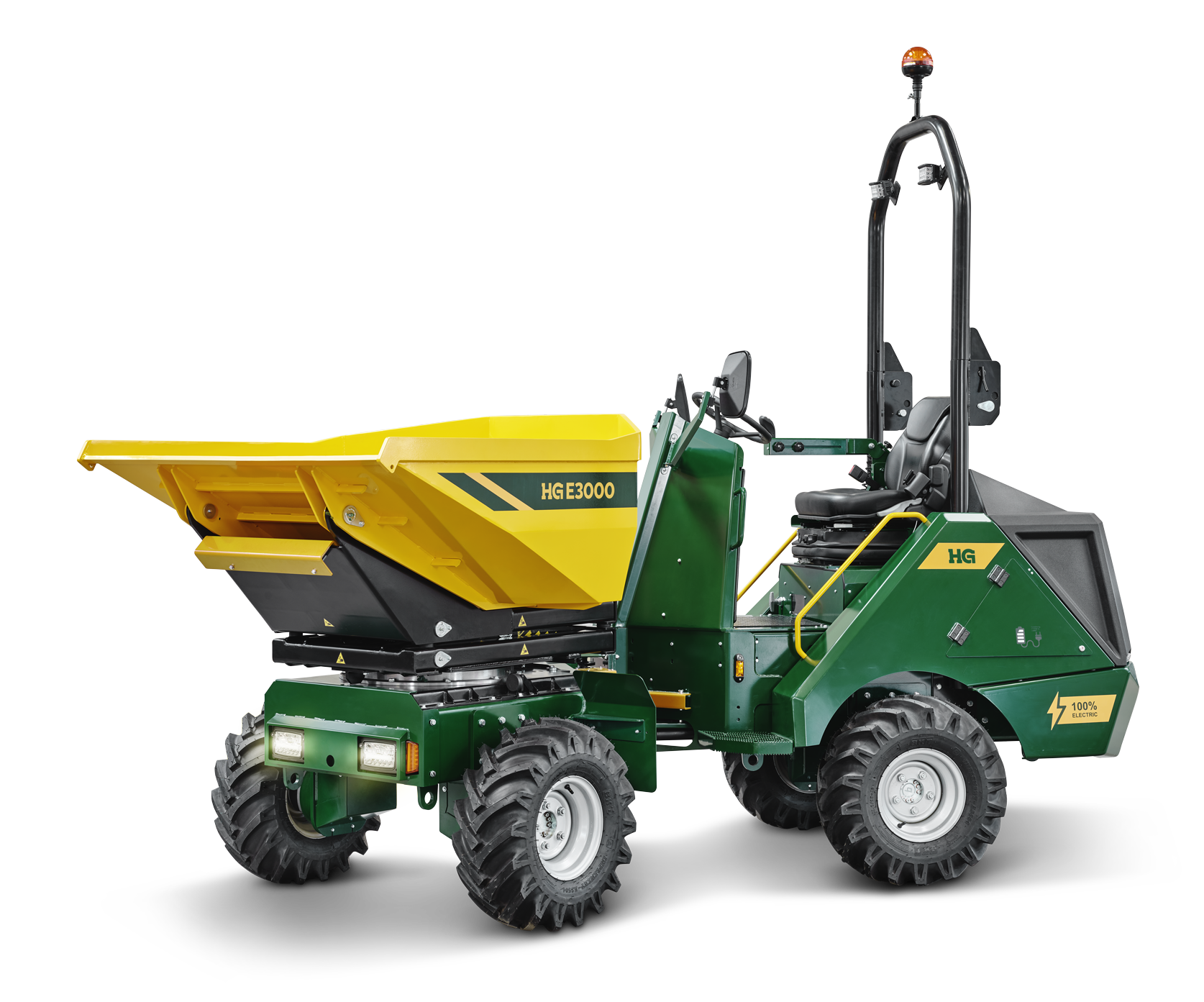 At the heart of the E3000 is HG’s patented articulated drivetrain with four independent in-wheel motors. This unique design delivers the most energy-efficient power transfer in the industry, using significantly less power than conventional electric system. This translates directly into lower operating costs and more hours on site between charges.