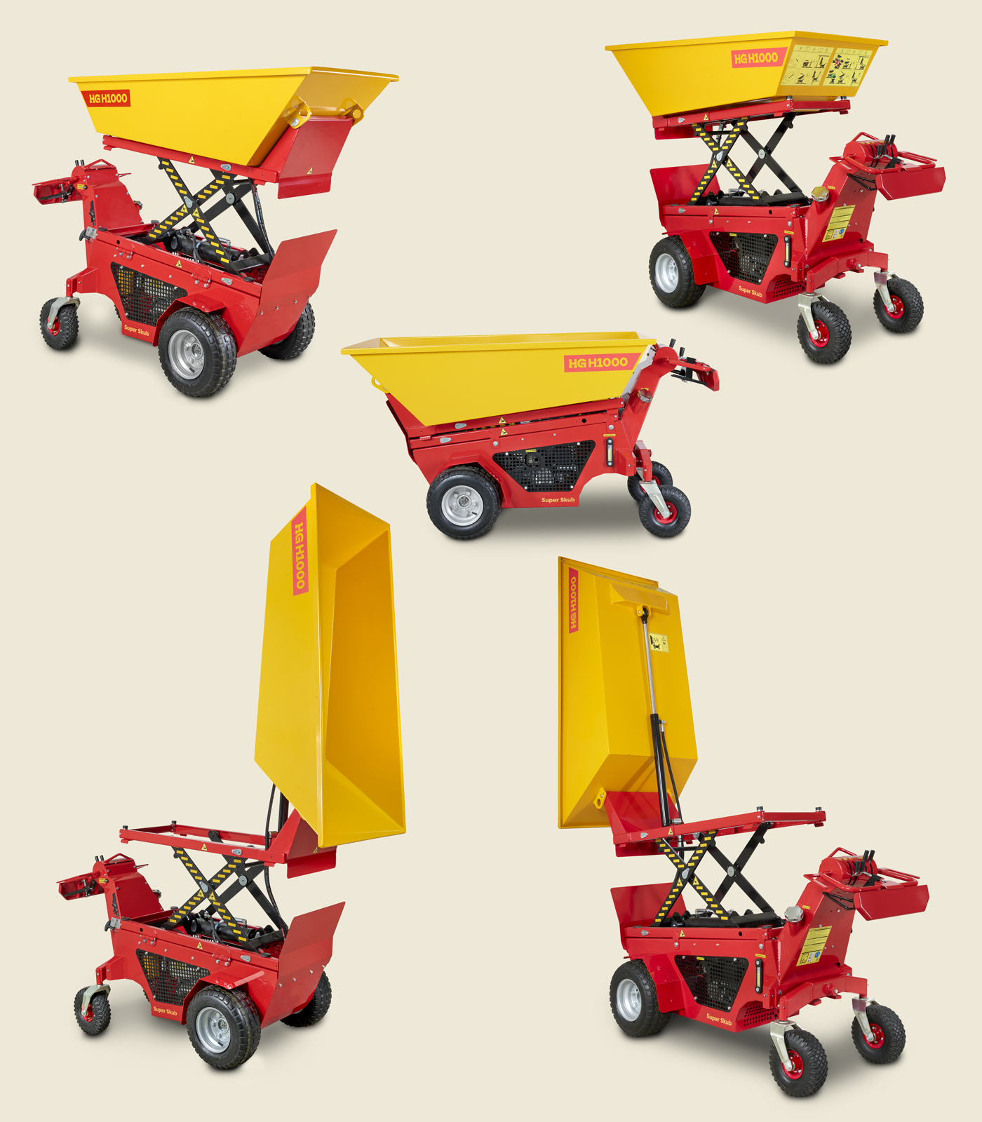 Optimize your performance on site with the HG H1000 'Super Skub' High Tip - built to unload 1.000 kg at 125 cm tipping height